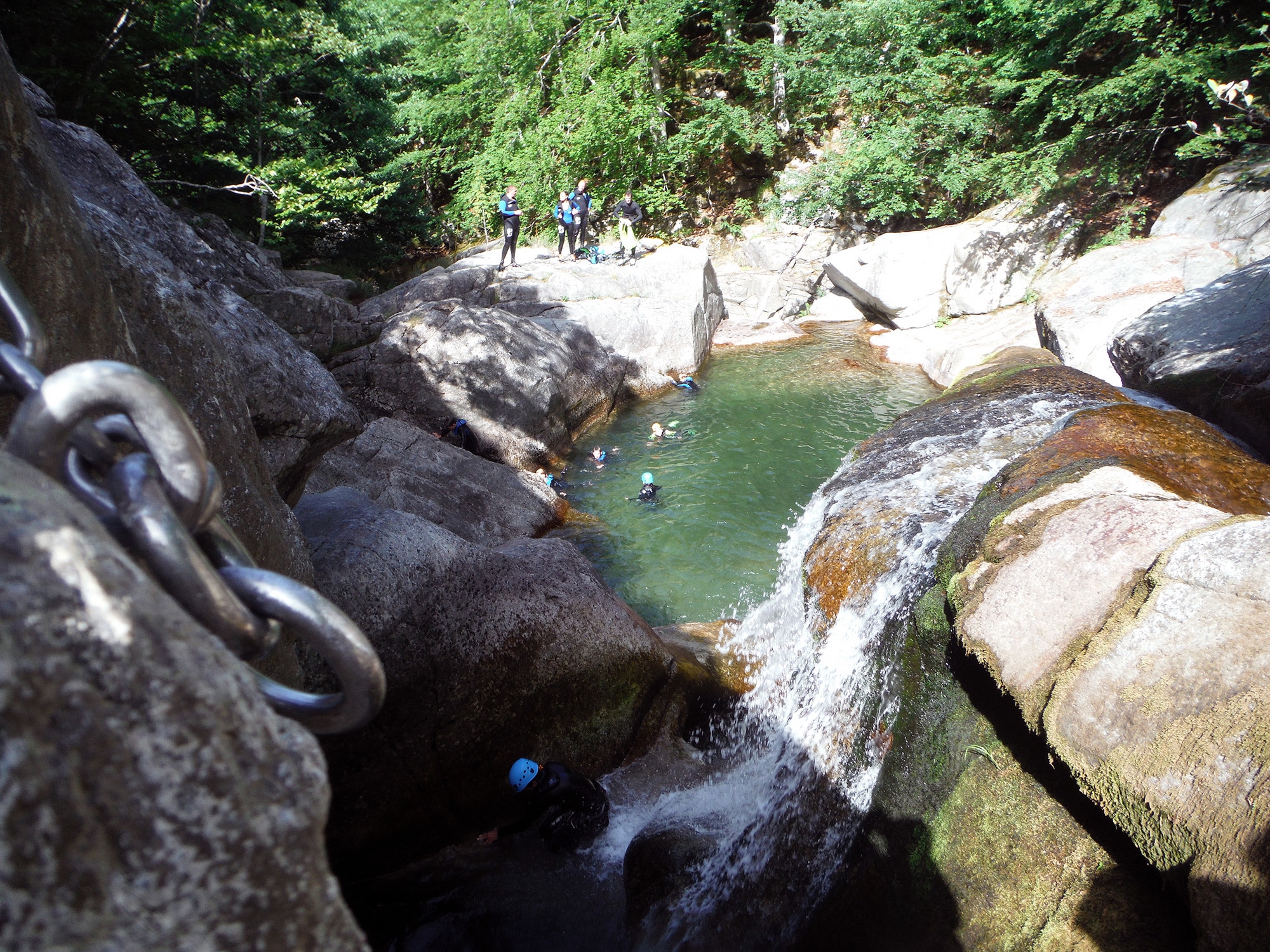 Canyon du Tapoul. Ce parcours est complet, et très beau bien que nous l’ayons fait sous la pluie. Géraud fait preuve de professionnalisme et d’une grande pédagogie.