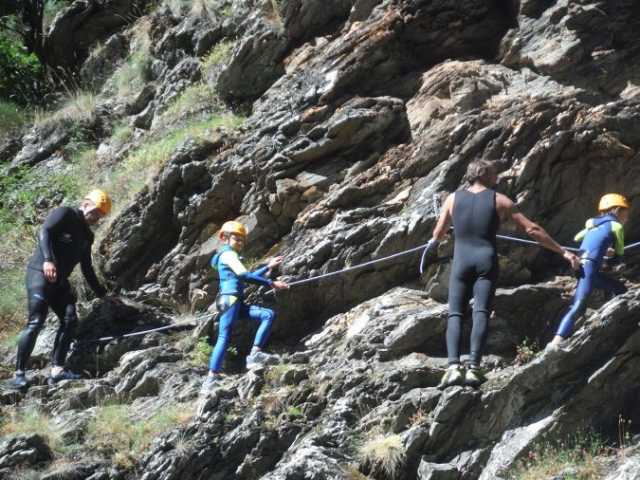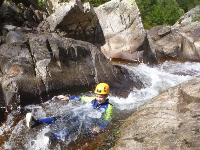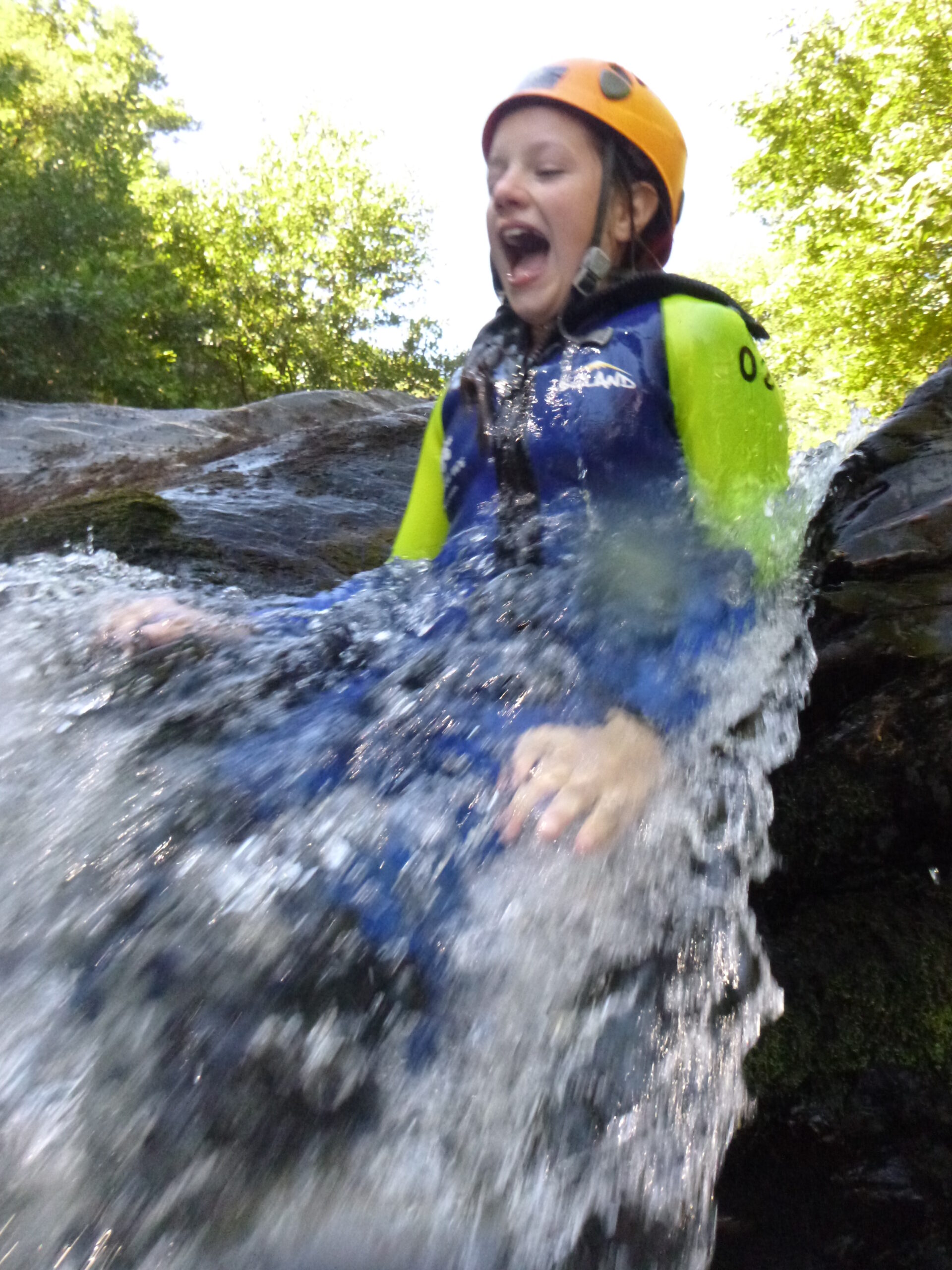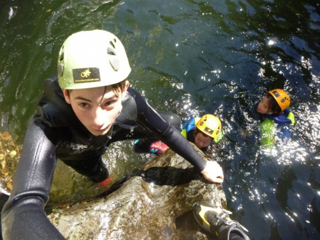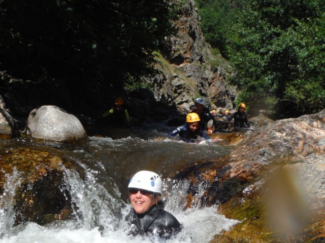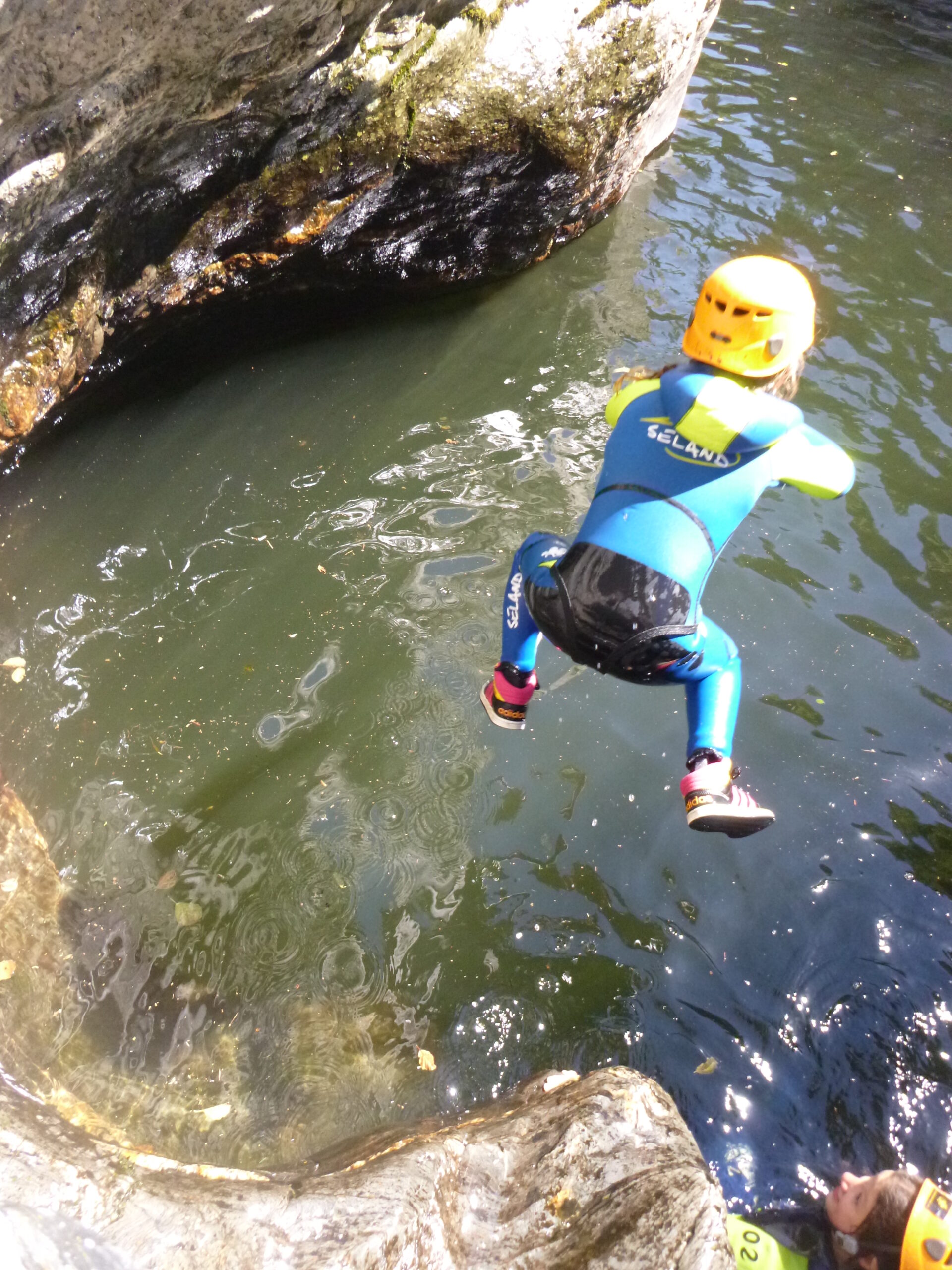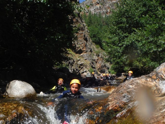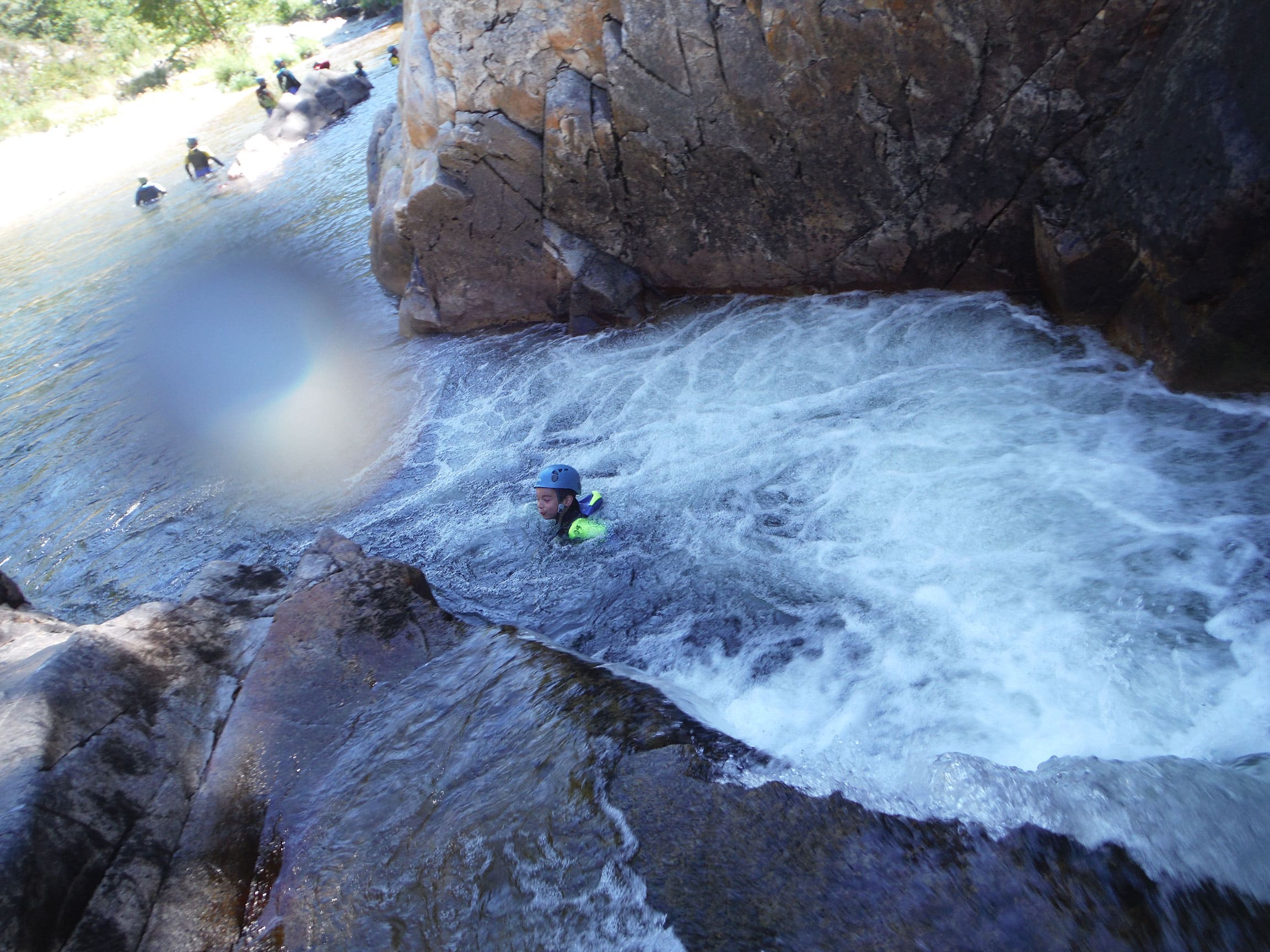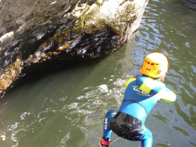 Il s’agit bien de canyoning mais sans les difficultés verticales. Pas de descentes en rappel ni de sauts obligatoires dans le parcours. Par contre, un côté très ludique avec beaucoup de sauts possibles tout le long du parcours, des toboggans naturels, de belles portions de nage en eau vive.